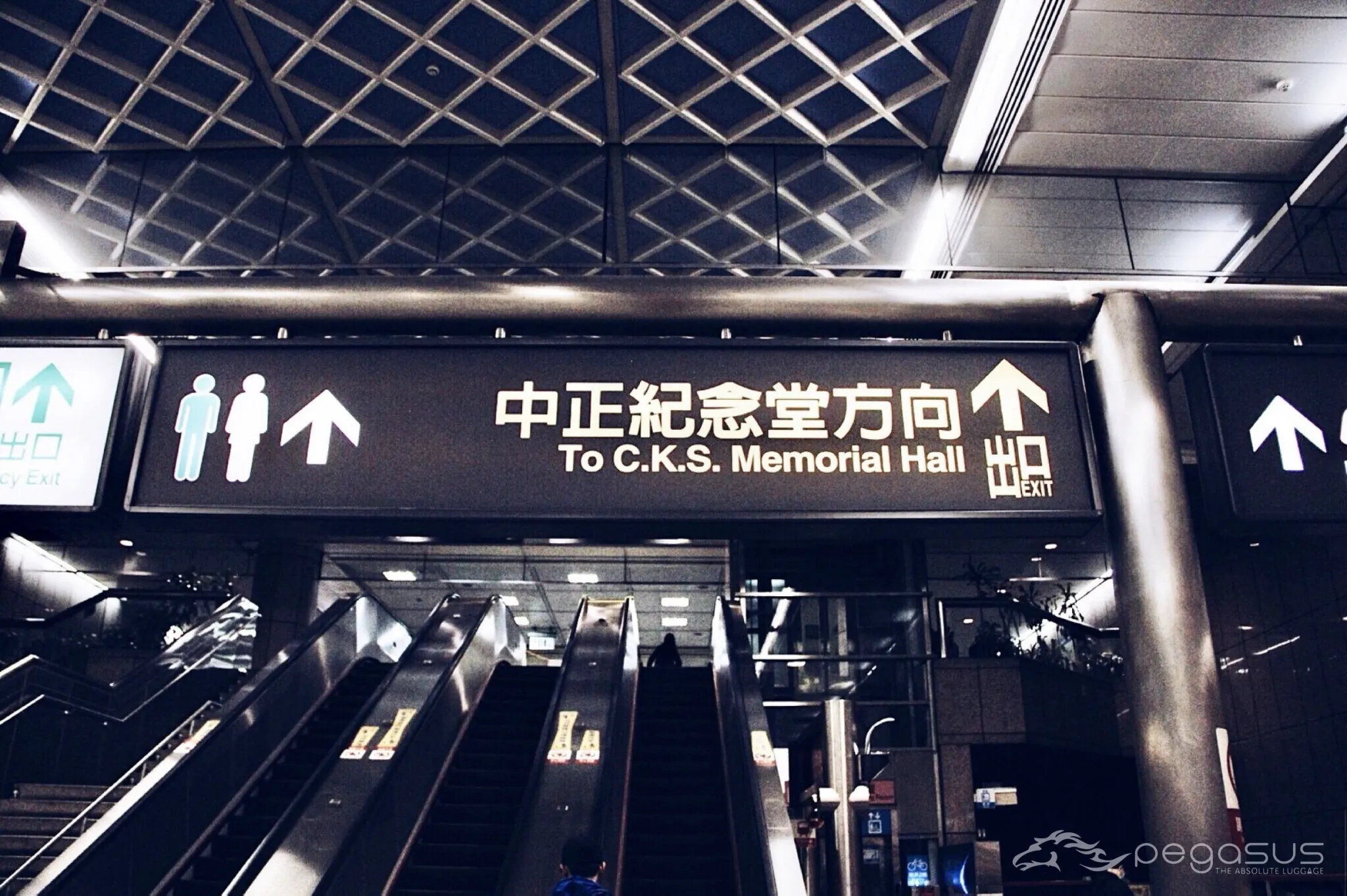 ลงสถานีแล้วจะมีป้ายบอกทางตลอด ไม่หลงแน่ๆ พอใกล้ถึงทางออก ทางเดินจะมีกรอบรูปตลอดกำแพง เป็น ‘Memorial Hall’ จริงๆ