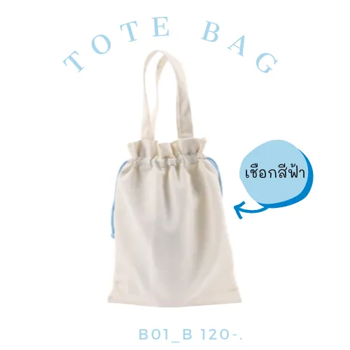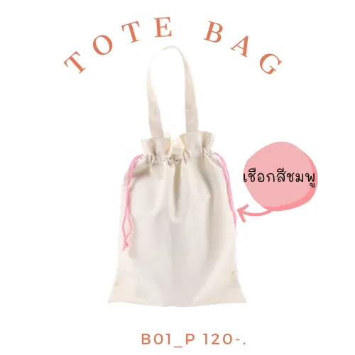 #กระเป๋าผ้า ไม่มีฐาน มีหูรูด B01 120.-มีเชือก 3 สี เชือกสีเขียว เชือกสีชมพู เชือกสีฟ้าขนาด 27x37 ซ.ม. หูสูง 16 ซ.ม.สามารถสกรีนได้สูงสุด 7 ตัวอักษร ฟรี